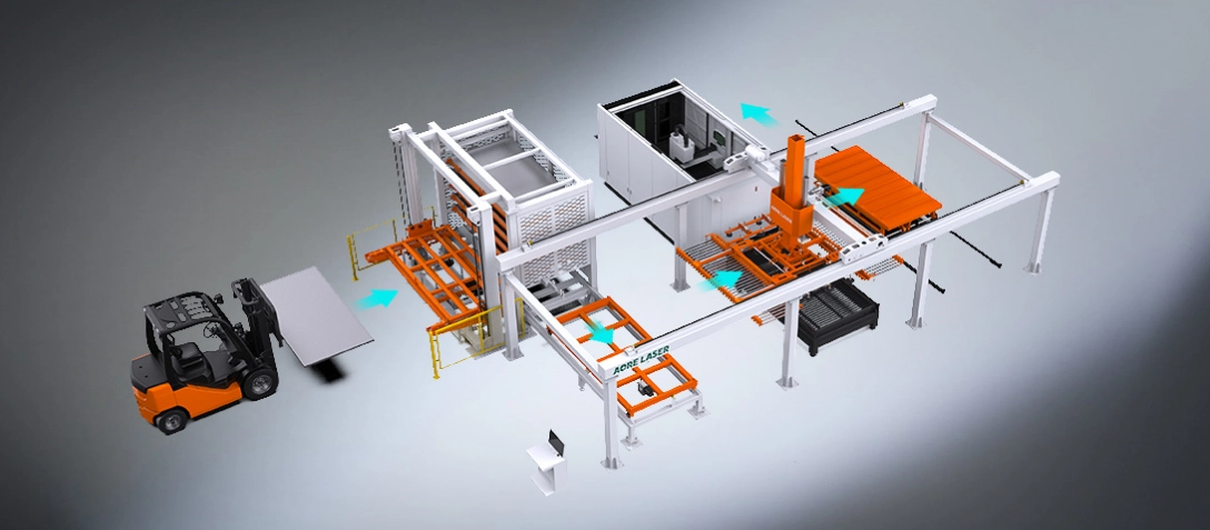 实现从生产排程、排版编程到原材料存储、原材料上料、切割、切割后工件及废料的转运,实现自动化和按计划加工