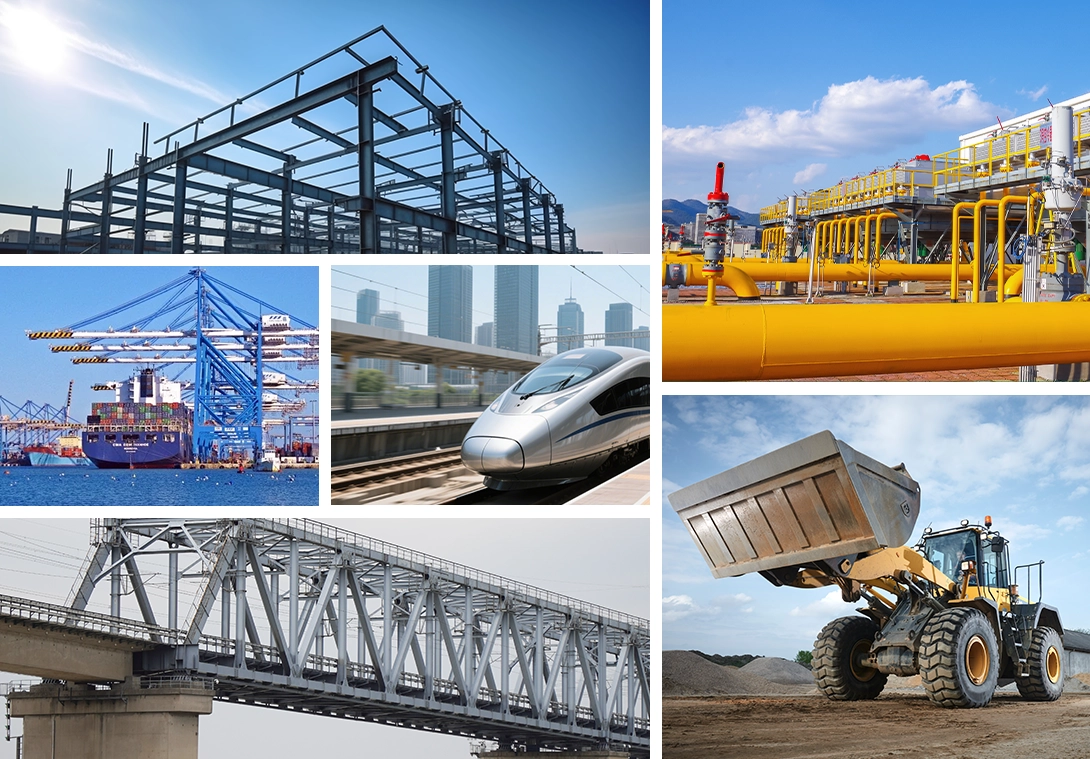 我们的产品广泛应用于石油管道、钢结构建筑、铁路交通、船舶制造、桥梁建筑、工程机械等行业。