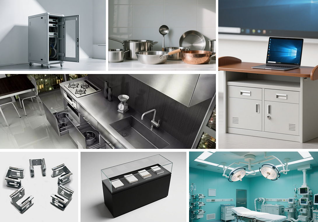 我们的产品广泛应用于钣金加工、展柜货架、教学教具、金属家具、厨房厨具等行业。