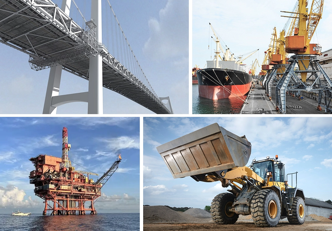 我们的产品适用于船舶与海洋工程、重工机械、桥梁工程、外加工等行业。