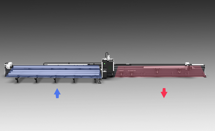 当不需要整管加工时,可切换两卡模式,下料只采用随动翻板下料,省去第三卡盘拉料时间,最大限度提升加工效率。