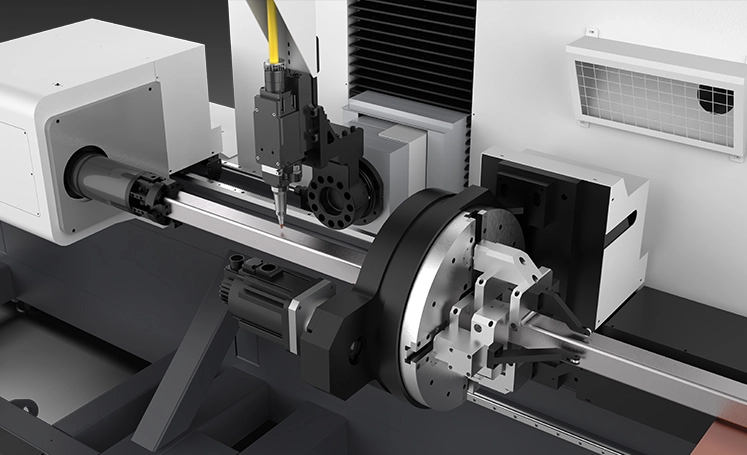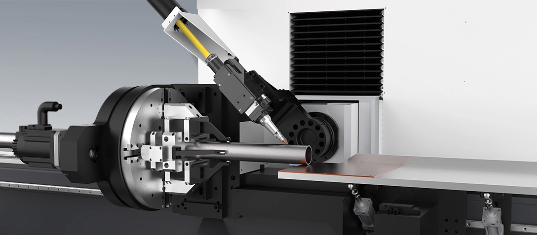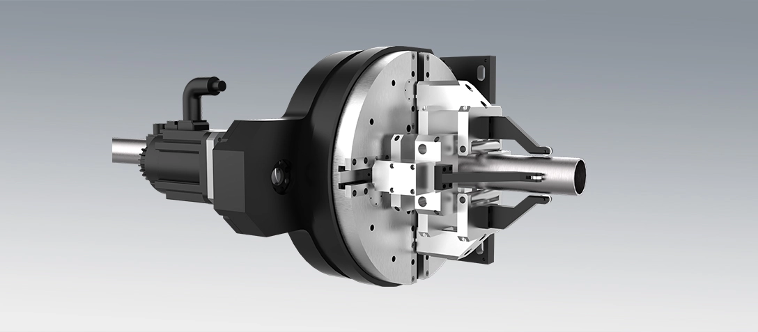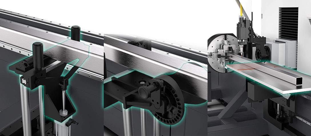 上料区采用凹轮+随动支撑,下料区翻板随动支撑,伺服智能控制全过程实现对管材的动态支撑。