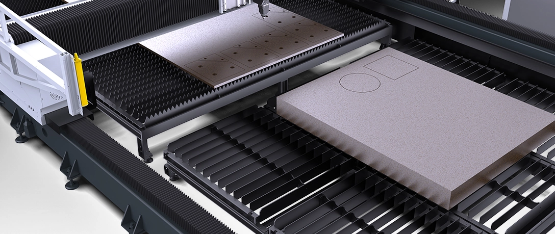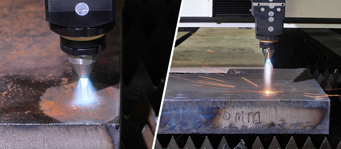 激光火焰复合和纯激光切割双模式快速切换,激光火焰复合模式,经济高效征服超厚碳钢板材,纯激光模式保障中薄板效率与精度。