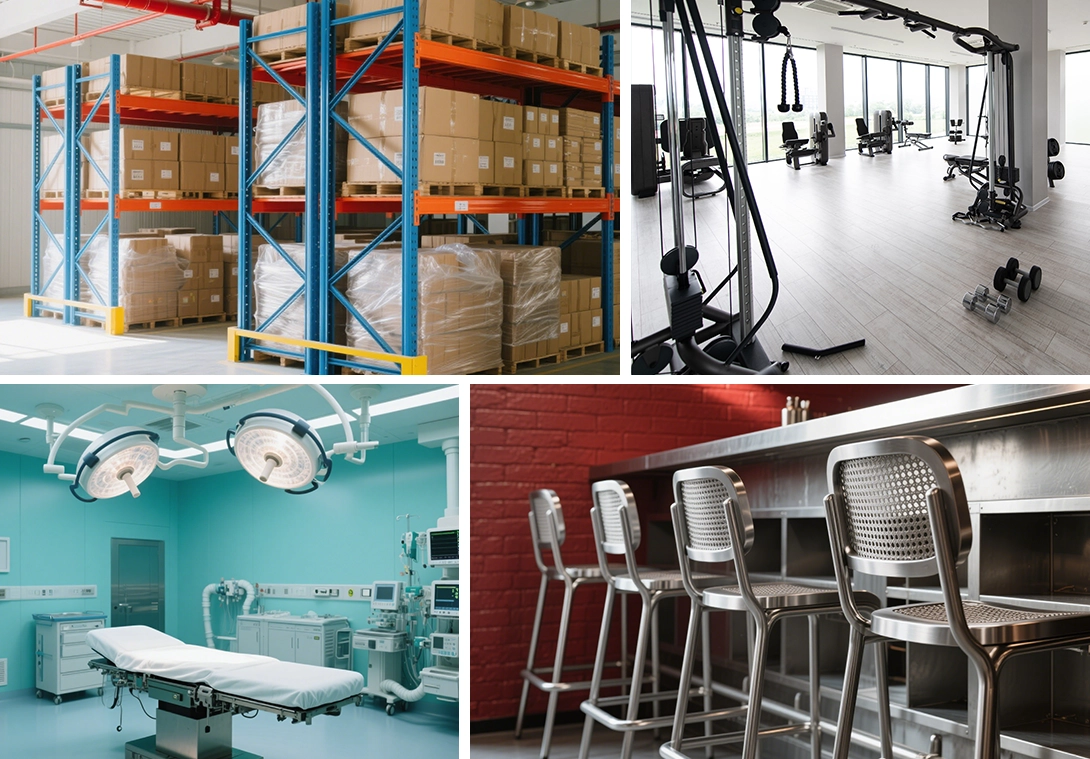 我们的产品广泛应用于货柜展架、医疗器械、健身器材、厨房家具等行业。