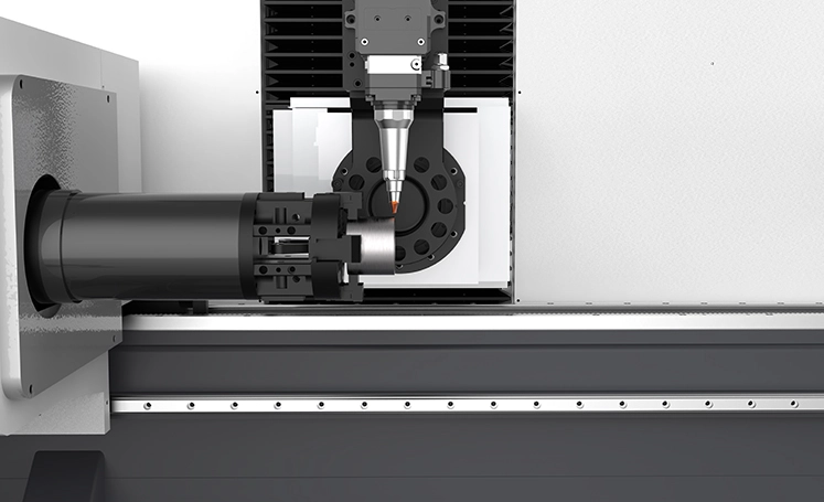 上料区采用凹轮+随动支撑,下料区翻板随动支撑,伺服智能控制全过程实现对管材的动态支撑。